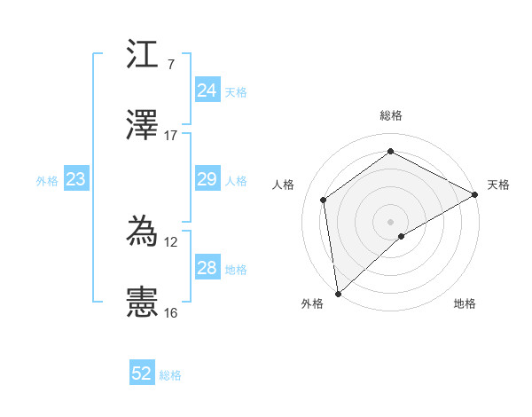 江澤 為憲さんを姓名の画数から五運を鑑定
