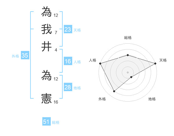 為我井 為憲さんを姓名の画数から五運を鑑定