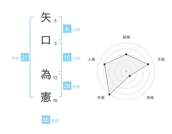 矢口 為憲さんの天格は8画の4点!