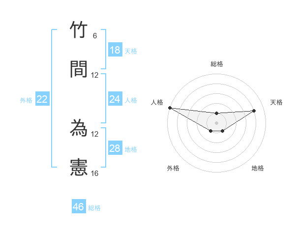 竹間 為憲さんを姓名の画数から五運を鑑定