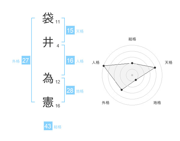袋井 為憲さんの外格は27画の3点!