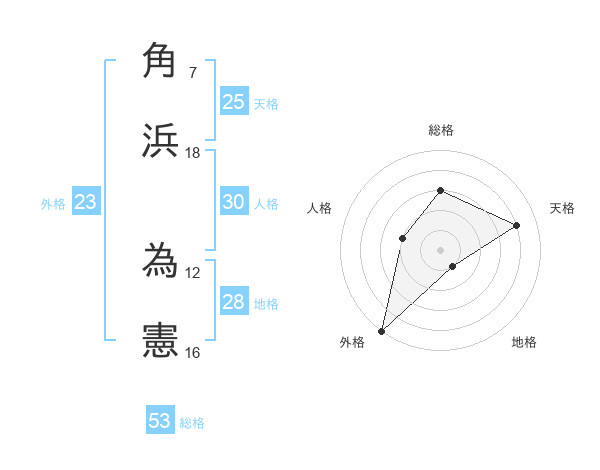 角浜 為憲さんの総格は53画の3点!