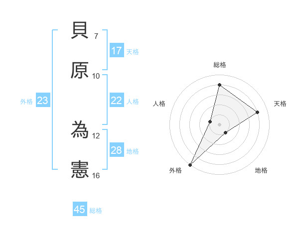 貝原 為憲さんを姓名の画数から五運を鑑定