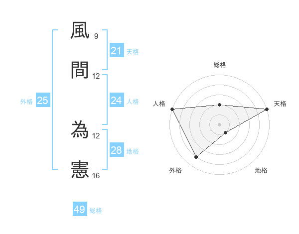 家系が持つ宿命的な運勢を表します。祖先から受け継いだ苗字ですので自分の力が及びません。家柄を象徴します。