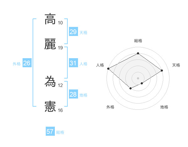 高麗 為憲さんの総格は57画の4点!