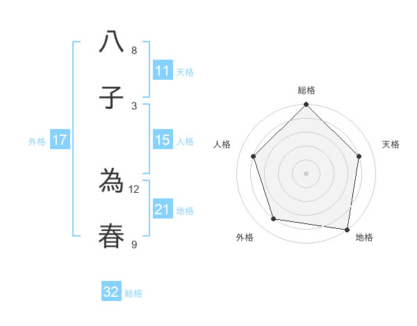 八子 為春さんの総格は32画の5点!