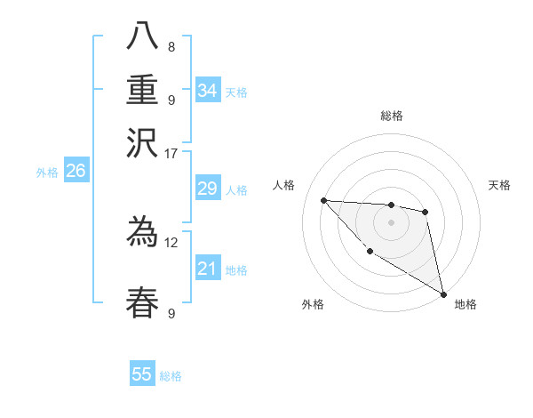 八重沢 為春さんの総格は55画の1点!