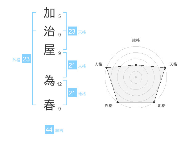 加治屋 為春さんの天格は23画の5点!