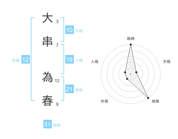 大串 為春さんの総格は31画の5点!