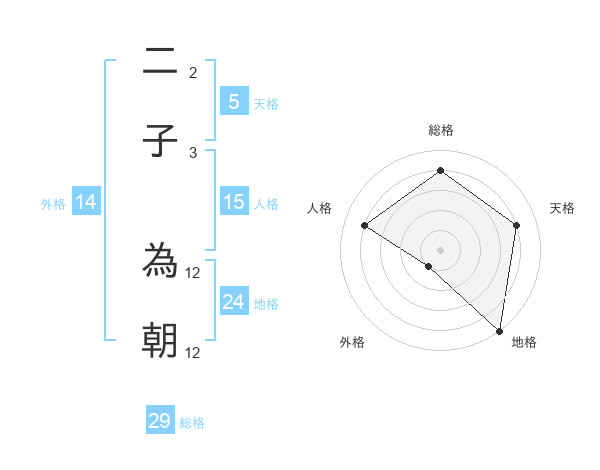 二子 為朝さんの外格は14画の1点!
