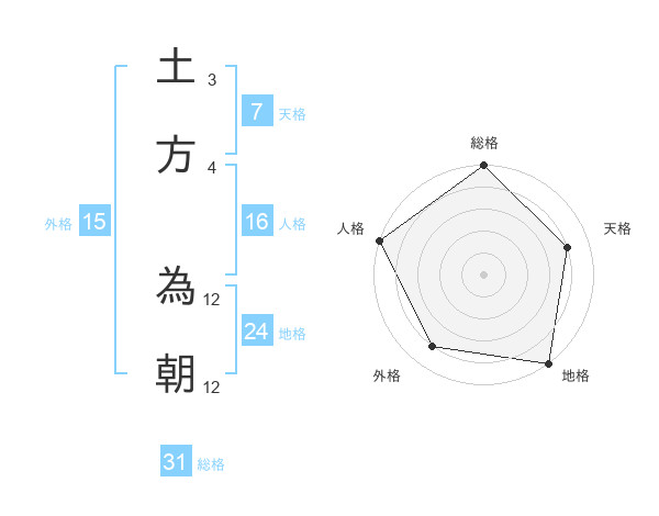 土方 為朝さんの総格は31画の5点!