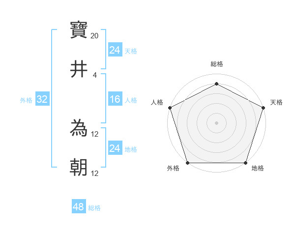 寶井 為朝さんを姓名の画数から五運を鑑定