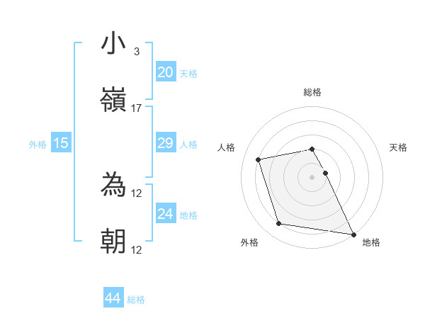 小嶺 為朝さんの外格は15画の4点!