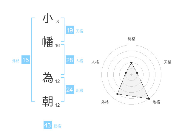 小幡 為朝さんの外格は15画の4点!