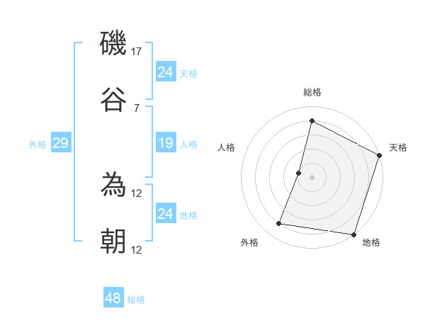 磯谷 為朝さんを姓名の画数から五運を鑑定