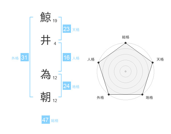 鯨井 為朝さんを姓名の画数から五運を鑑定