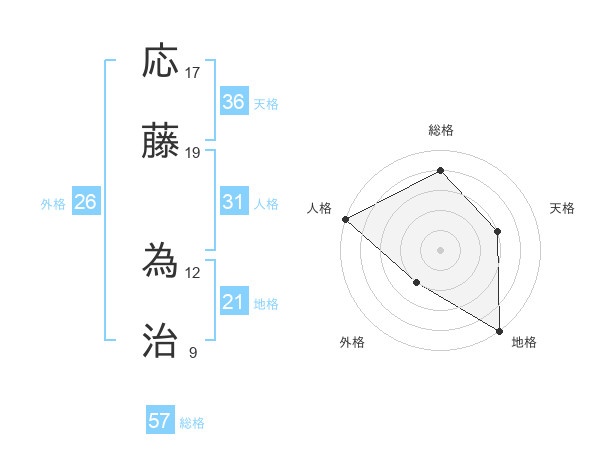 応藤 為治さんの総格は57画の4点!