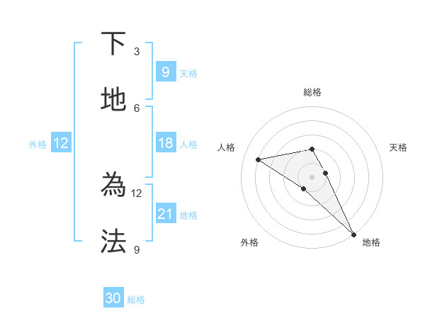 下地 為法さんの地格は21画の5点!