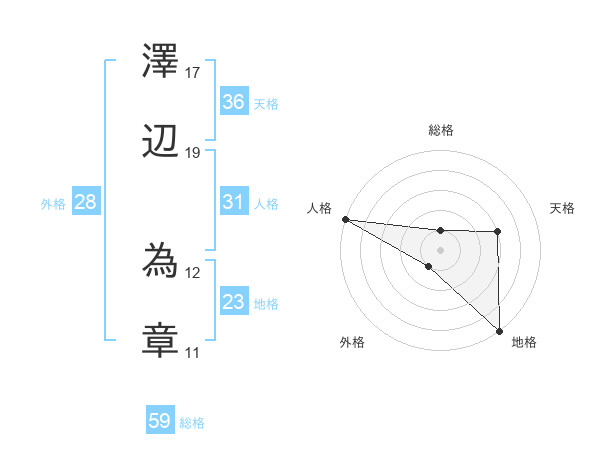 澤辺 為章さんの総格は59画の1点!