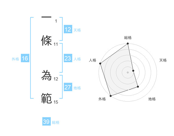 一條 為範さんの地格は27画の3点!