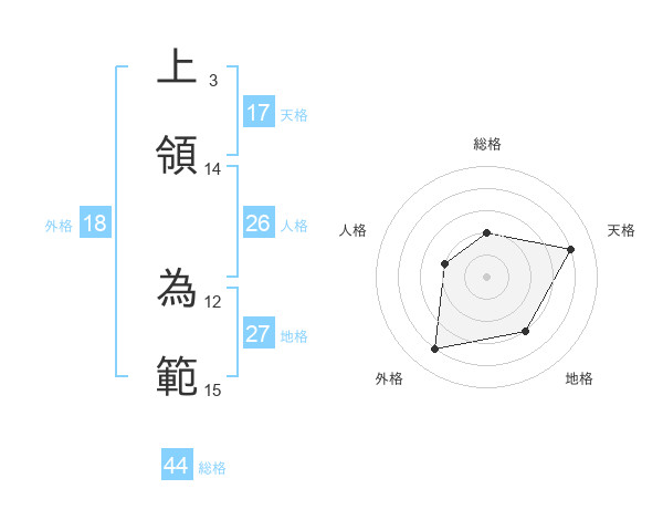 上領 為範さんの天格は17画の4点!