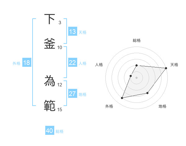 下釜 為範さんの天格は13画の5点!