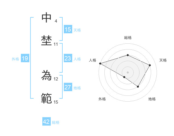 中埜 為範さんの天格は15画の4点!