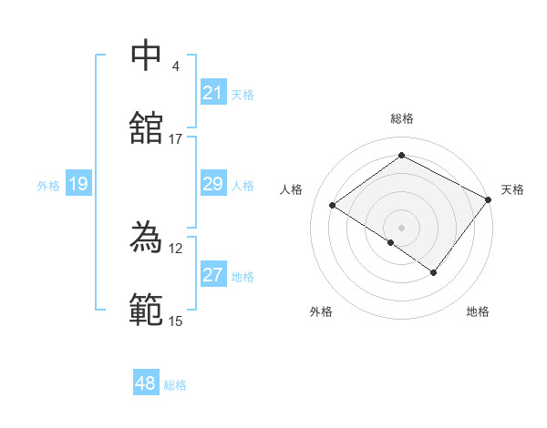中舘 為範さんの天格は21画の5点!