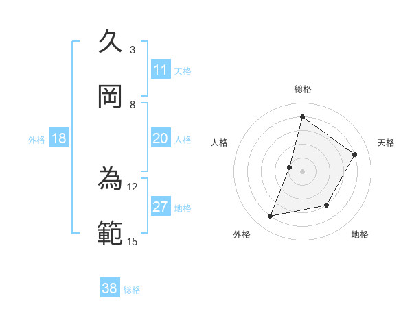 久岡 為範さんの総格は38画の4点!