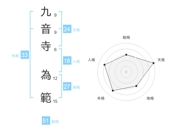九音寺 為範さんの総格は51画の3点!