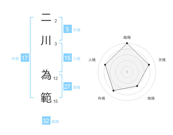 二川 為範さんの総格は32画の5点!