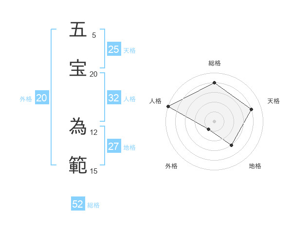五宝 為範さんの総格は52画の4点!