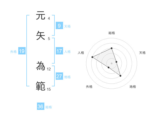 元矢 為範さんの地格は27画の3点!