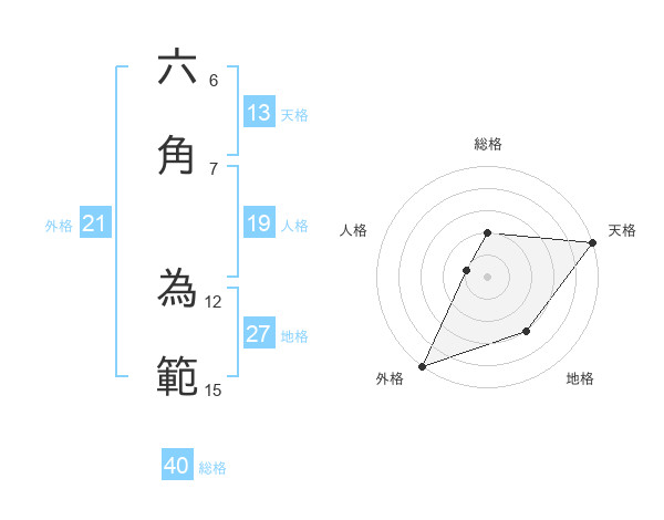 六角 為範さんの外格は21画の5点!
