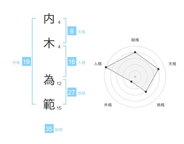 内木 為範さんの総格は35画の4点!