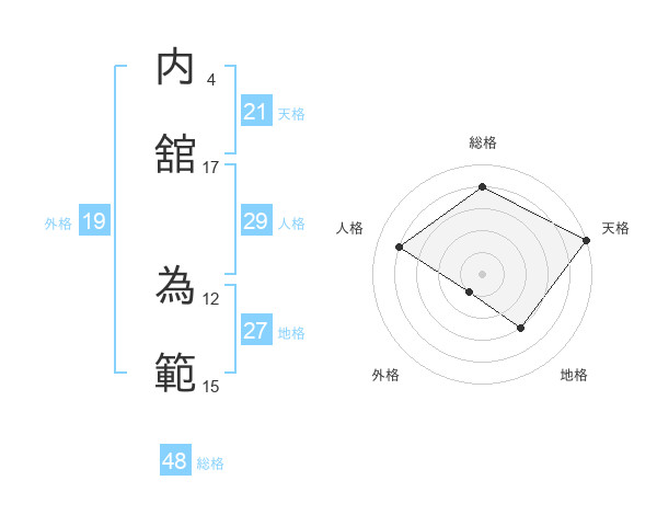 内舘 為範さんの天格は21画の5点!
