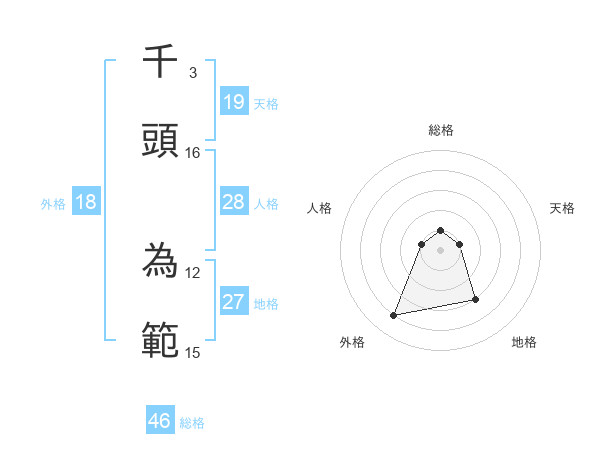 千頭 為範さんの外格は18画の4点!