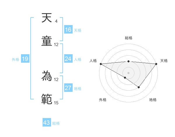 天童 為範さんの総格は43画の2点!