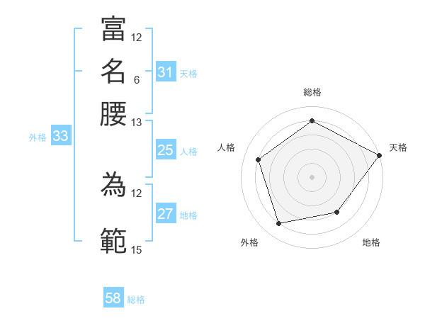 富名腰 為範さんを姓名の画数から五運を鑑定
