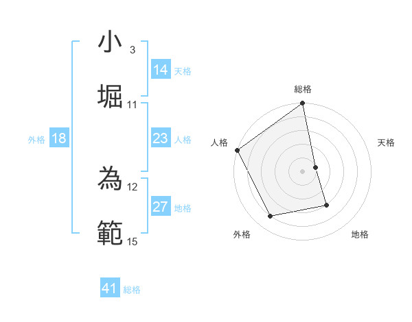 小堀 為範さんの天格は14画の1点!