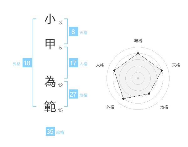 小甲 為範さんの天格は8画の4点!