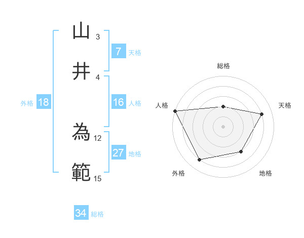 山井 為範さんの地格は27画の3点!