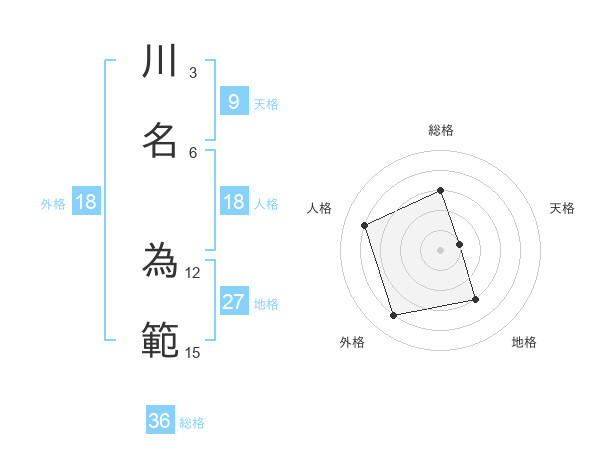 川名 為範さんの外格は18画の4点!