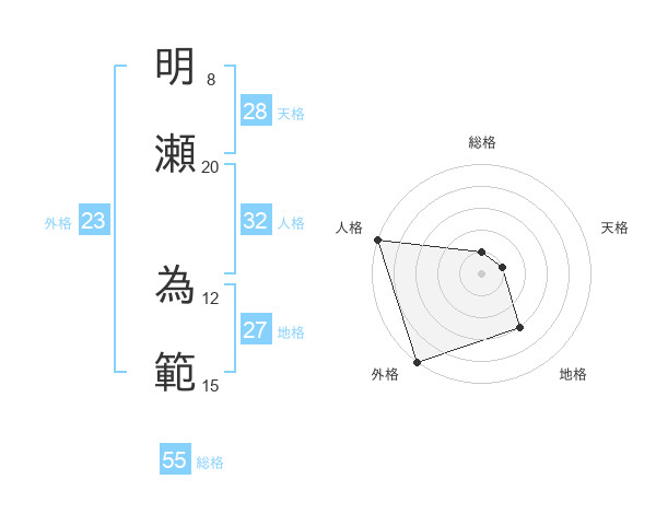 明瀬 為範さんを姓名の画数から五運を鑑定