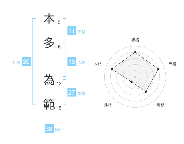 本多 為範さんの総格は38画の4点!