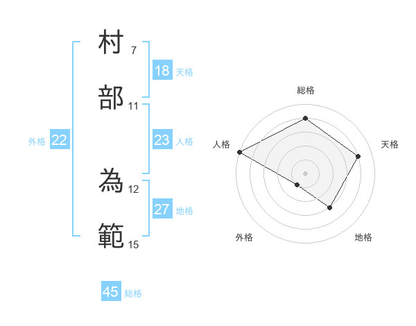 村部 為範さんの総格は45画の4点!