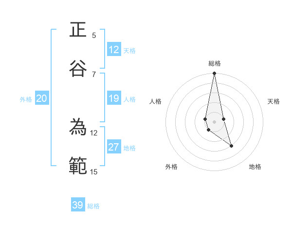 正谷 為範さんの総格は39画の5点!