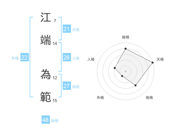 江端 為範さんの天格は21画の5点!