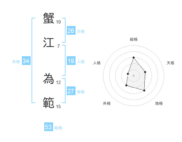 蟹江 為範さんの総格は53画の3点!