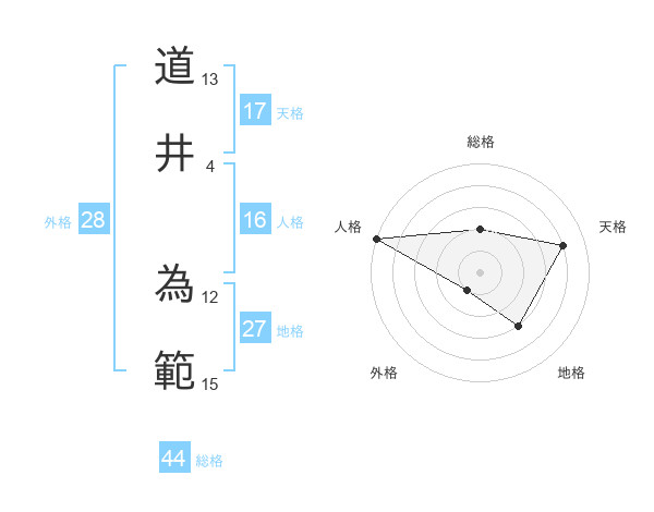 道井 為範さんの天格は17画の4点!
